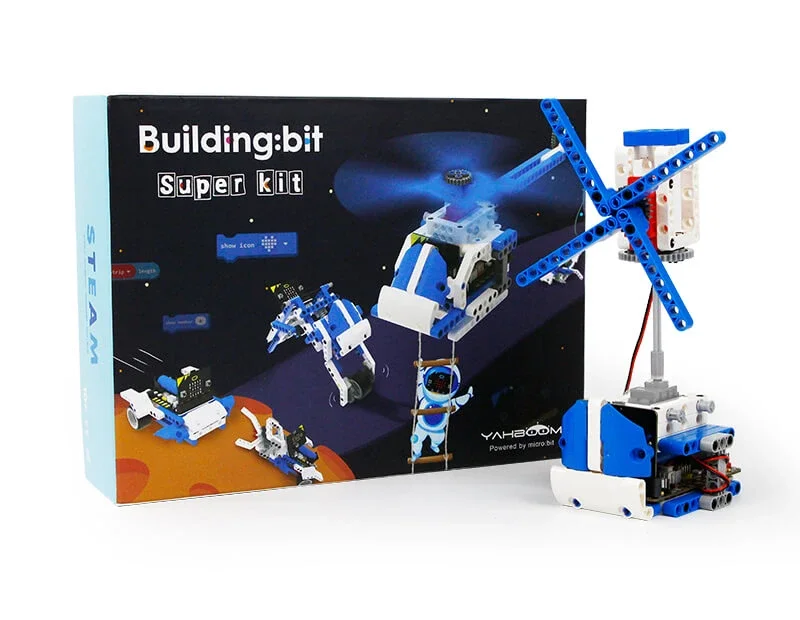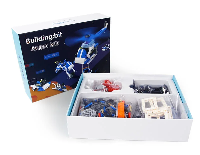 Набор программируемых строительных блоков 16 в 1 superkit разработан на основе BBC Micro:bit, который состоит из Super: Плата расширения бит, сервопривод строительных блоков, мотор строительных блоков, аккумулятор и 358 деталей строительных блоков.