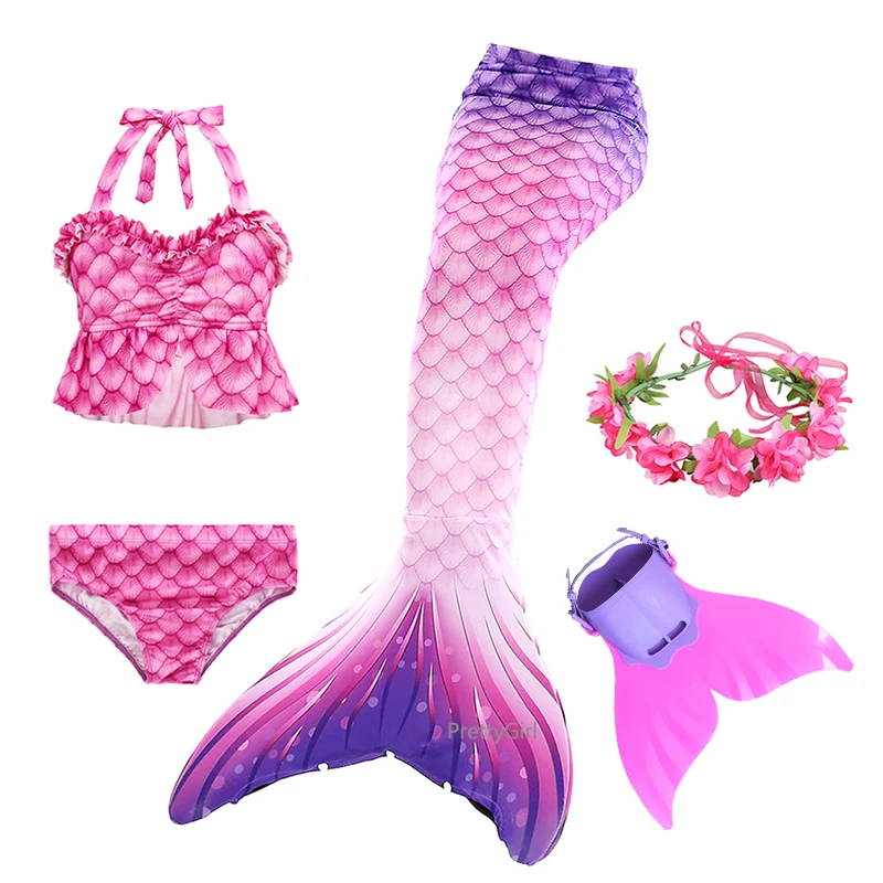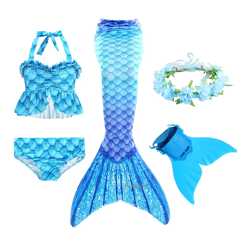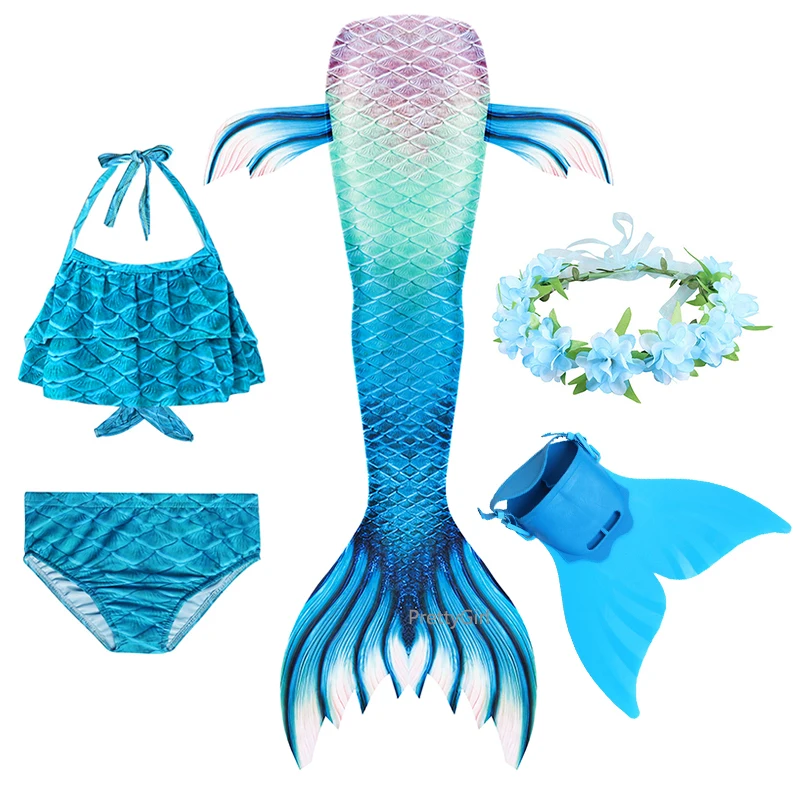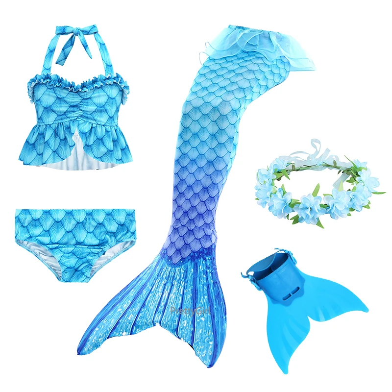 5 шт.: 1 платье с хвостом русалки + 1 бюстгальтер + 1 шорты + 1 гирлянда + 1 ластовица Monofin
