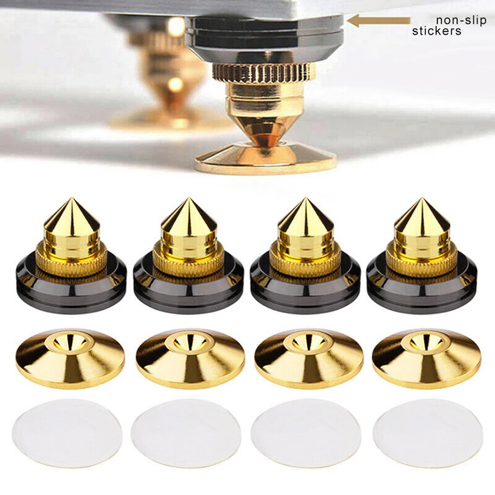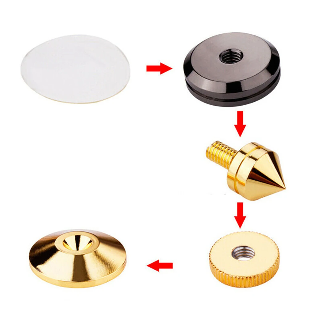 Улучшенное Качество звука: Устанавливается под шипами на напольном динамике, он может защитить деревянный или плиточный пол от царапин и повреждений, позволяя шипам отделить акустическую коробку от пола, тем самым улучшая общее качество звука.