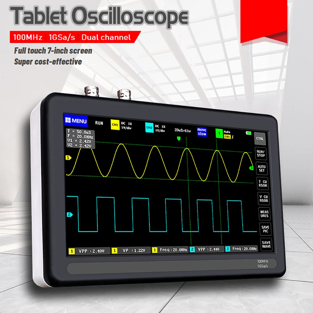 7. Функция измерения курсора, удобно вручную измерять период, частоту и напряжение