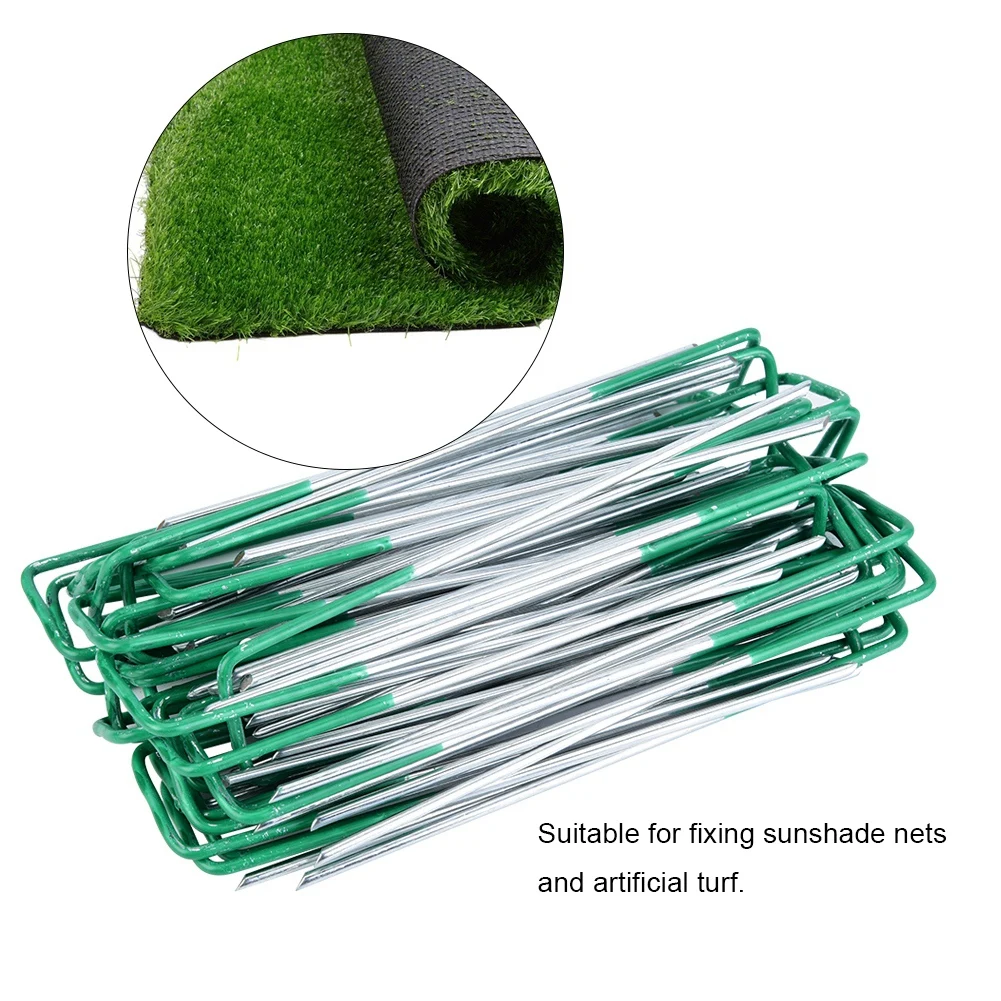100 шт половинные зеленые искусственная трава газон U шпильки металлические оцинкованные колышки степлеры травяной сад