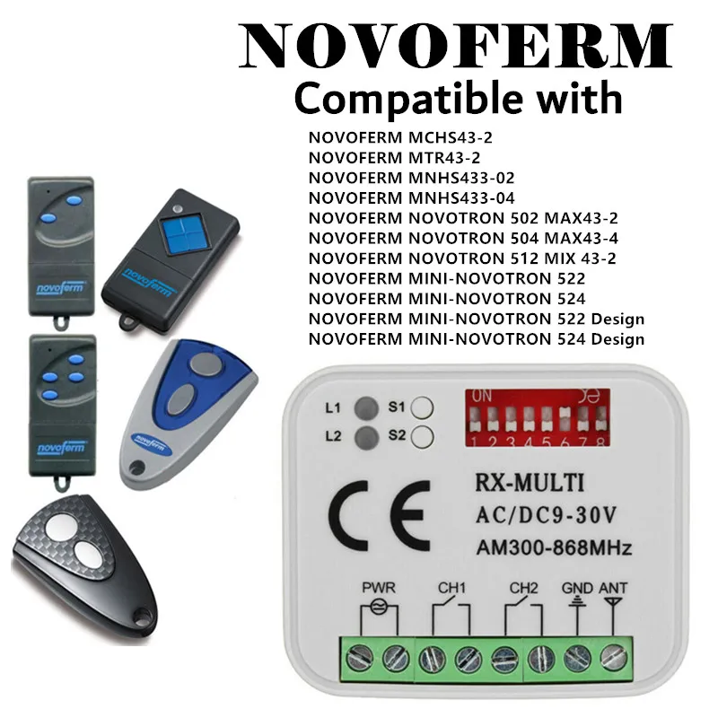 1) Название: Универсальный RX мультиприемник 2) Рабочее напряжение: 9V-30V AC DC 3) канал: 2. 4) Частота: 300 МГц-900 МГц 5) Код: скользящий и фиксированный код и код обучения