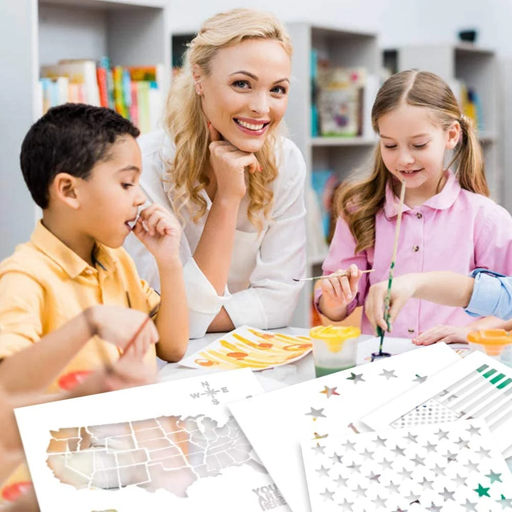 7 шт пластиковый трафарет шаблон U.S 50 Звездные карты флаги трафарет в форме звезды для стекла и стены Искусство граффити Рисование Живопись