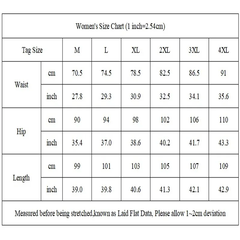 3XL: Длина брюк: 107 см, обхват талии: 82-91 см, обхват бедер: 106 см