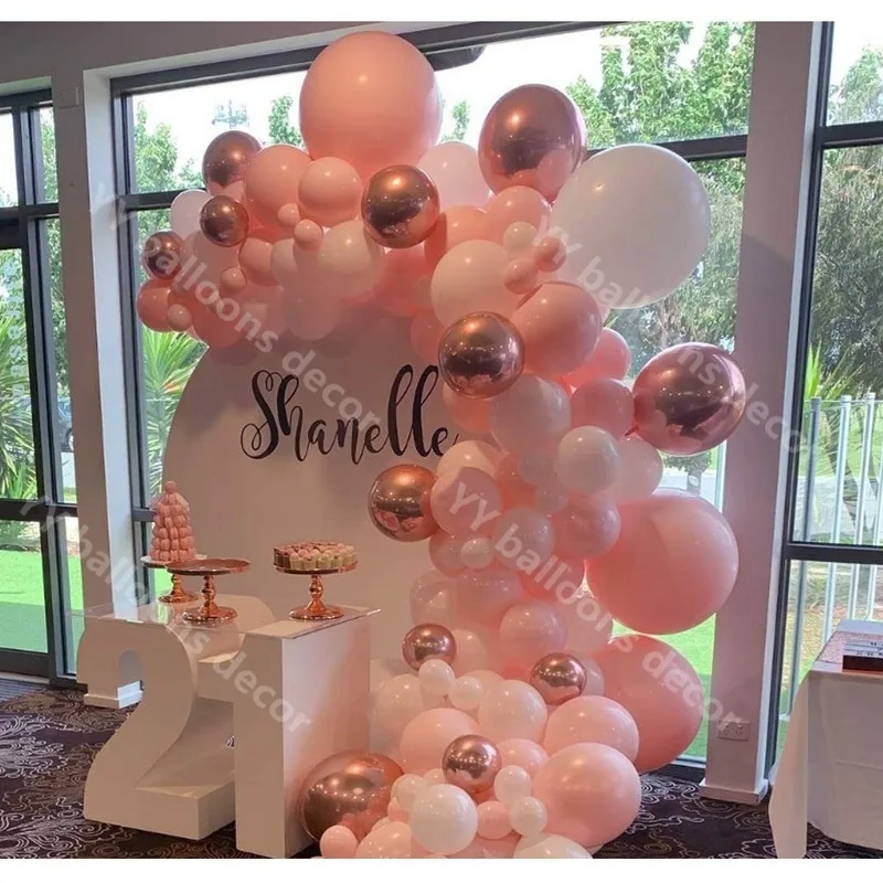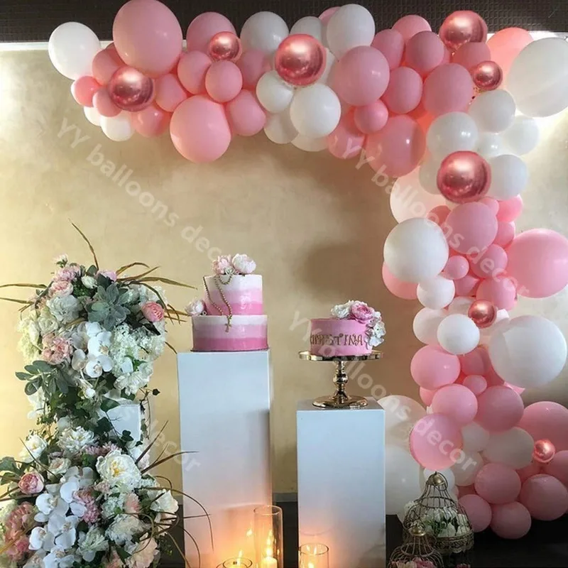 10 дюймовые розовые и белые воздушные шары (80 шт), 1 шт. воздушный шар цепи