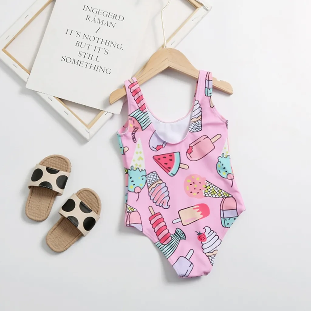 Цельный купальный костюм для маленьких девочек, без рукавов, с мультяшным принтом мороженого