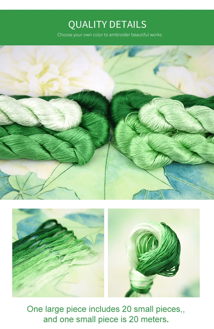 400 м чистый цвет вышивки Нитки/поделки, ручная вышивка/аксессуары ручной работы/средний greenseries Особенности: 1.100% шелк и высокое качество, подходит для Сучжоу ручной вышивки. 2. Длина: 400 метров (20 метров/маленький кусок) 3. У вас есть восемь цветов на выбор 4. Пожалуйста, обратите внимание, что в зависимости от дисплея, продукт может производить некоторые различия в цвете, пожалуйста, знать и понять эту ситуацию. Упаковка: 1 шт. (включая 20 маленьких штук)