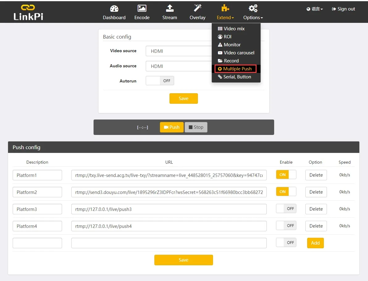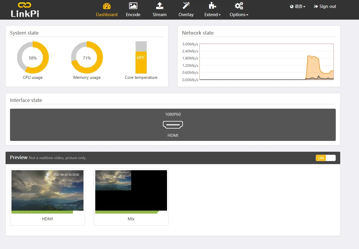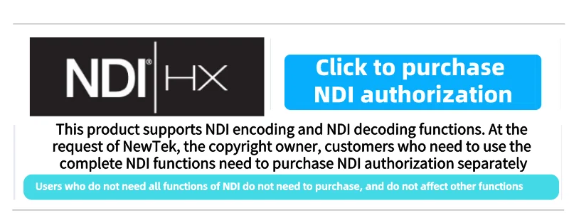 Вы также можете использовать демонстрацию NDI без приобретения лицензии NDI. Он используется для 30 минут после запуска, экран будет черным через 30 минут, и он может быть использован снова в течение 30 минут после перезагрузки. Но это влияет только на NDI и не влияет на другие протоколы (такие как SRT, RTMP, RTSP, HTTP, UDP и т. д.).