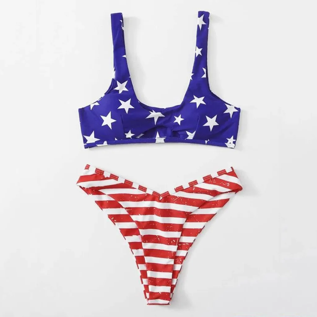 Женский сексуальный купальник-бикини с принтом американского флага и вырезами, пляжная одежда