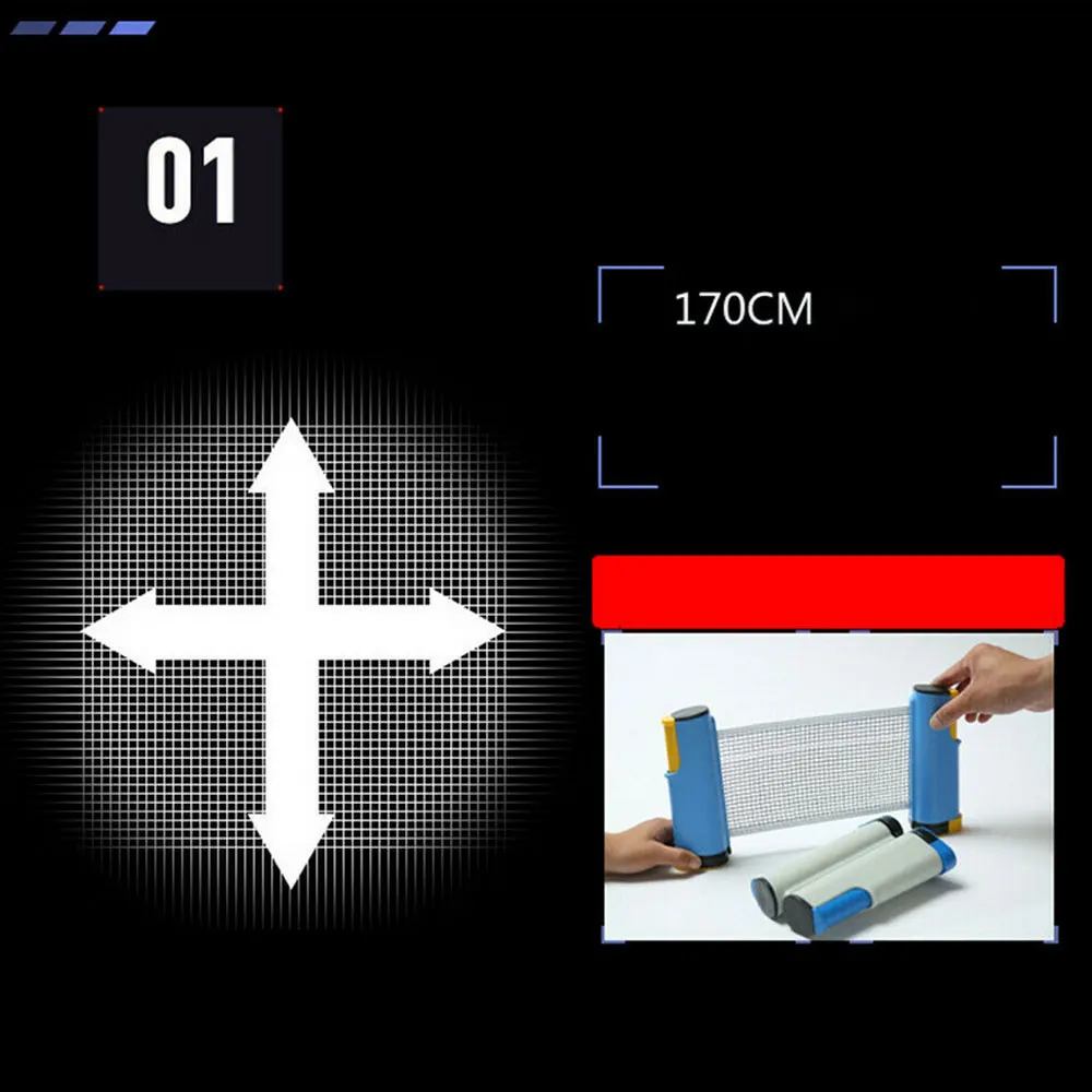 Портативная стойка для настольного тенниса, можно закрепить на любой настольной доске (толщина 5 см) и превратить ее в теннисный стол. Выдвижной, может быть увеличен до 1,7 м. С пружинным зажимом, легко снимается и устанавливается. Портативный и легкий, идеально подходит для любителей настольного тенниса.