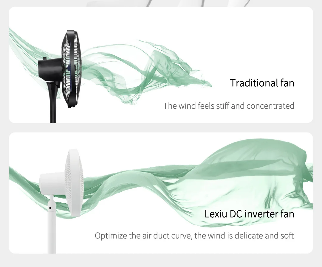 Используя высокопроизводительный бесщеточный двигатель постоянного тока с преобразованием частоты, по сравнению с обычным двигателем переменного тока, плавное регулирование скорости, ветер более стабильный, ветер чувствует себя более естественным, в то же время, он также имеет шумоподавление и энергосбережение, менее 2 градусов электроэнергии в течение прохладного лета. * Данные о электричестве рассчитываются лабораторией Lexiu на основе ежедневного использования 1 блока и 8 часов в течение 90 дней