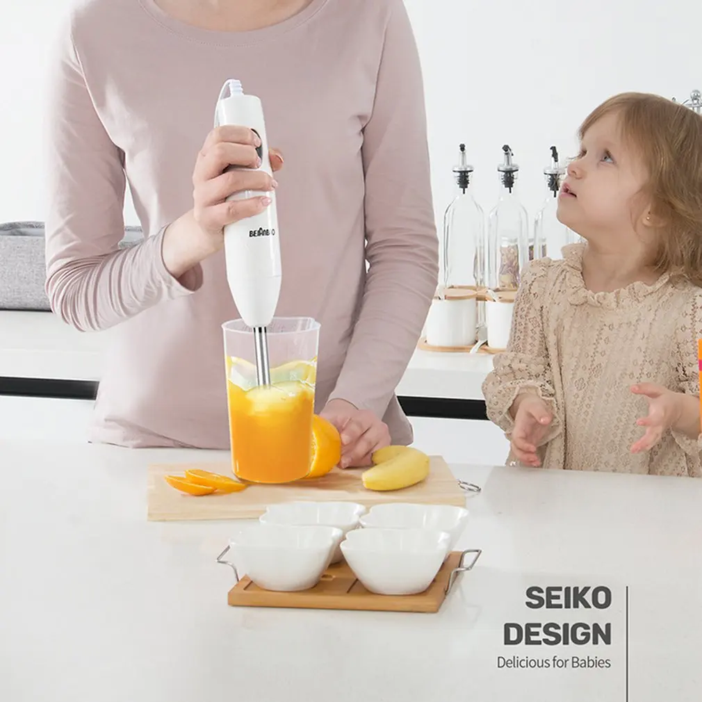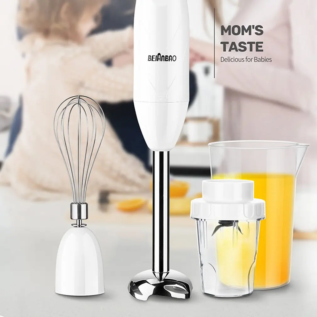 Ручной миксер предназначен для смешивания, измельчения, взбивания, взбивания, затмевания и эмульсии в зависимости от ваших задач приготовления пищи с валом миксера из нержавеющей стали и s-образным лезвием, венчиком из нержавеющей стали, чаша измельчителя 500 мл и 800 мл миксер.