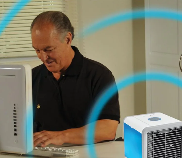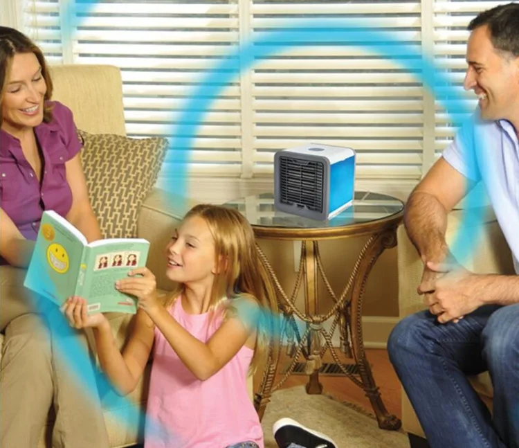 Product Name: Artic Air Cooler Household Air Cooler Office Water Cooled Air Conditioner Cool Fan Air Humidifier (Colorful) Item Name: AIR COOLER Material: ABS+PC... Unit Size: 141.5*141.5*148.5mm Color: Black+White Display Screen: NON Power: 8W Air Volume: 50 CFM Tank Capacity: 375 ML MINI FAN (mini fan): 9025, 12V, 0.4A, 2700RPM Power Supply Interface: Micro USB, 5-8V 2A Product Description Car Usb Air Cooler Personal Evaporative Air Cooler and Humidifier Portable Air Conditioner mini fans Air Conditioner Device With Indicator Display Photos: