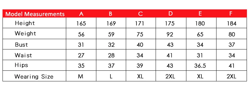 Вышеуказанные измерения модели предназначены только для справки. Трудно сказать размер от роста и веса, потому что люди переносят свой вес очень по-разному. Например, мужчины весом 65 кг, ростом 180 см, а остальные весом 75 кг, ростом 171 см, будут носить тот же размер. При выборе правильного размера женщины должны учитывать размер груди, а также вес, рост и талию. Плоские измерения в таблице размеров могут немного отличаться от фактических размеров одежды. Кроме того, возможны незначительные погрешности в пределах одного и того же размера. Несоответствия размеров могут быть отнесены к различным тканям, дополнительным растяжкам, дальнейшей стирке, различным способам измерения и т. д. Если небольшие различия в измерениях происходят с фактическим товаром, который вы получили, мы предлагаем вам примерить его, потому что очень вероятно, они не повлияют на то, как одежда подходит вам.