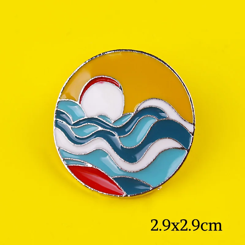 Go Travel! Outdoor Surf Mountains Forest White Clouds Round Badges On Backpack Fashion Pin Cartoon DIY Metal Badges for Clothes