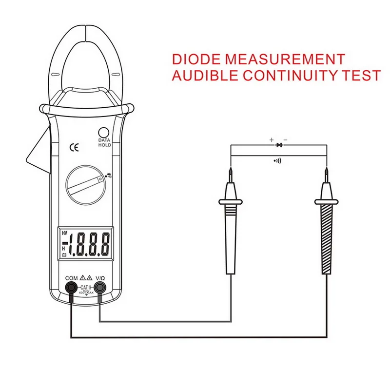 <Многофункциональный: Может использоваться для тестирования постоянного/переменного напряжения, переменного тока, вкл/выкл, зуммера, сопротивления и диода