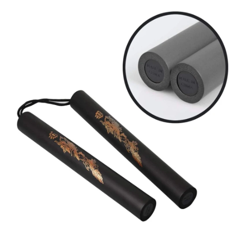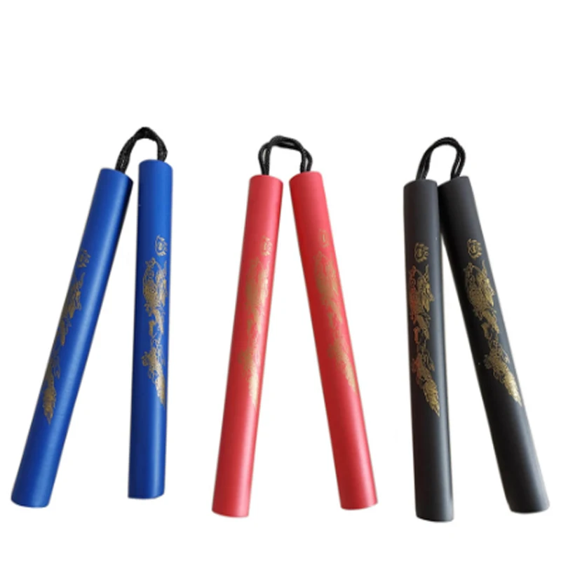 Спецификация 1. Название продукта: пена Nunchakus 2. Материал: Пена, веревка и пластик 3. Цвет: черный, синий, красный 4. Общая длина: 13 дюймов 5. Размер ручки: 11,81x1,30 дюйма 6. Длина цепочки: 6,10 дюйма