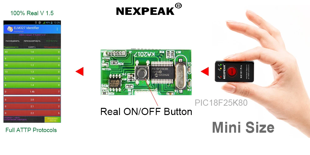 Это настоящая версия высокого качества V1.5, поддерживает все транспортные средства OBD2. True PIC 16F25K80 Chip set, если нет, 100% полный возврат средств. И он использует кристаллический осциллятор 4 МГц, поддерживает команды ATAL и ATPPS, построенные на основе оригинального микрочипа PIC18F25K80.