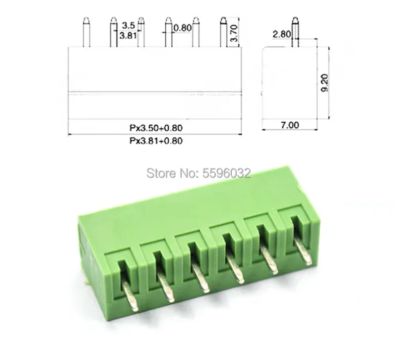Feature: Pitch: 3.81mm Pin: 2pin 3pin 4pin 5pin 6pin 7pin 8pin 9pin 10pin 11pin 12pin Screw: M2, Steel. Zinc plated Contact: Phosphor bronze Ni plated Wire cage: Brass, Ni plated Housing: PA66 UL94V-0 Rated voltage: 300V Rated current. 8A Wire range: 28-16A WG Package : 1pairs