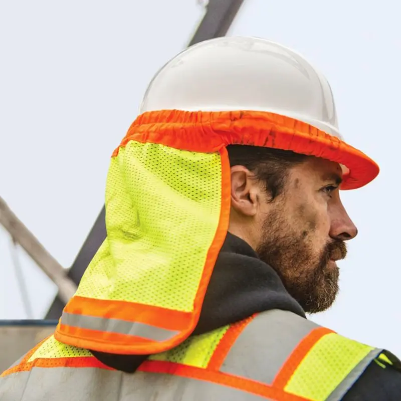 Прикрепляемая защита шеи защищает шею от солнца. Открытая Сетчатая Конструкция обеспечивает холодный поток воздуха для уменьшения тепла.