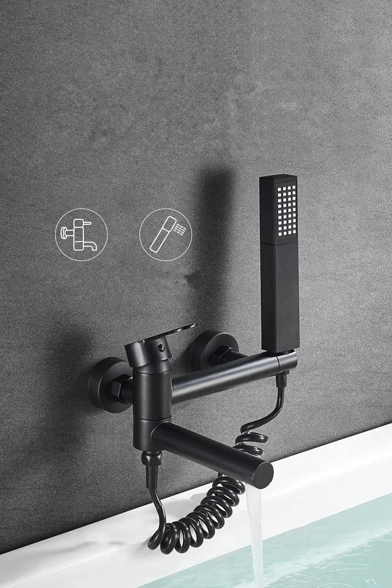 Смеситель для ванной комнаты с одной ручкой и водопадом, смеситель с ручным душем, настенный кран для ванной, ванна для душа