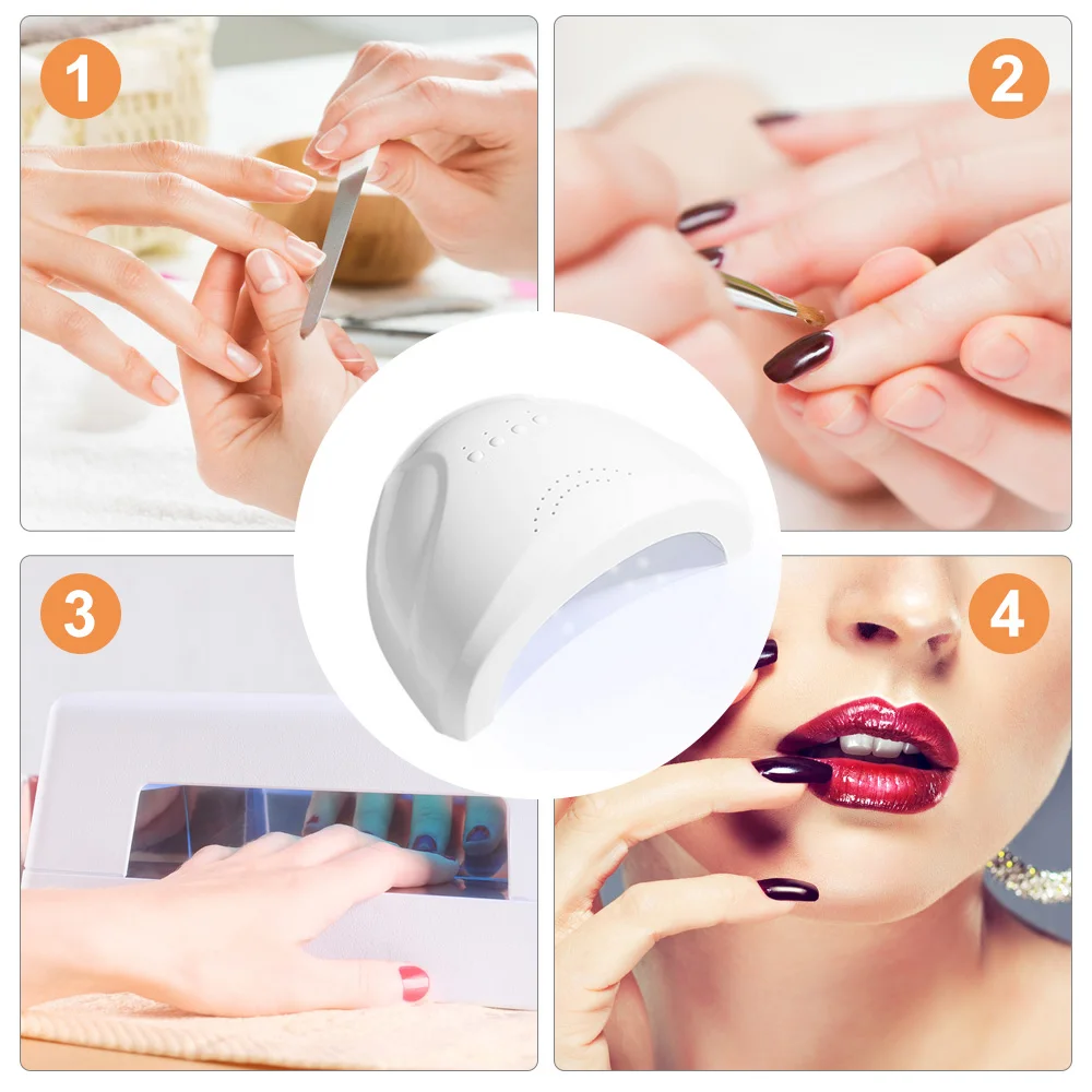 Лампа для ногтей имеет 5S.30S.60S режим синхронизации, быстро сохнет и не повреждает руки. Он может работать со всеми гель-лаками для ногтей, предлагаем Вам комфортный маникюр/педикюр.