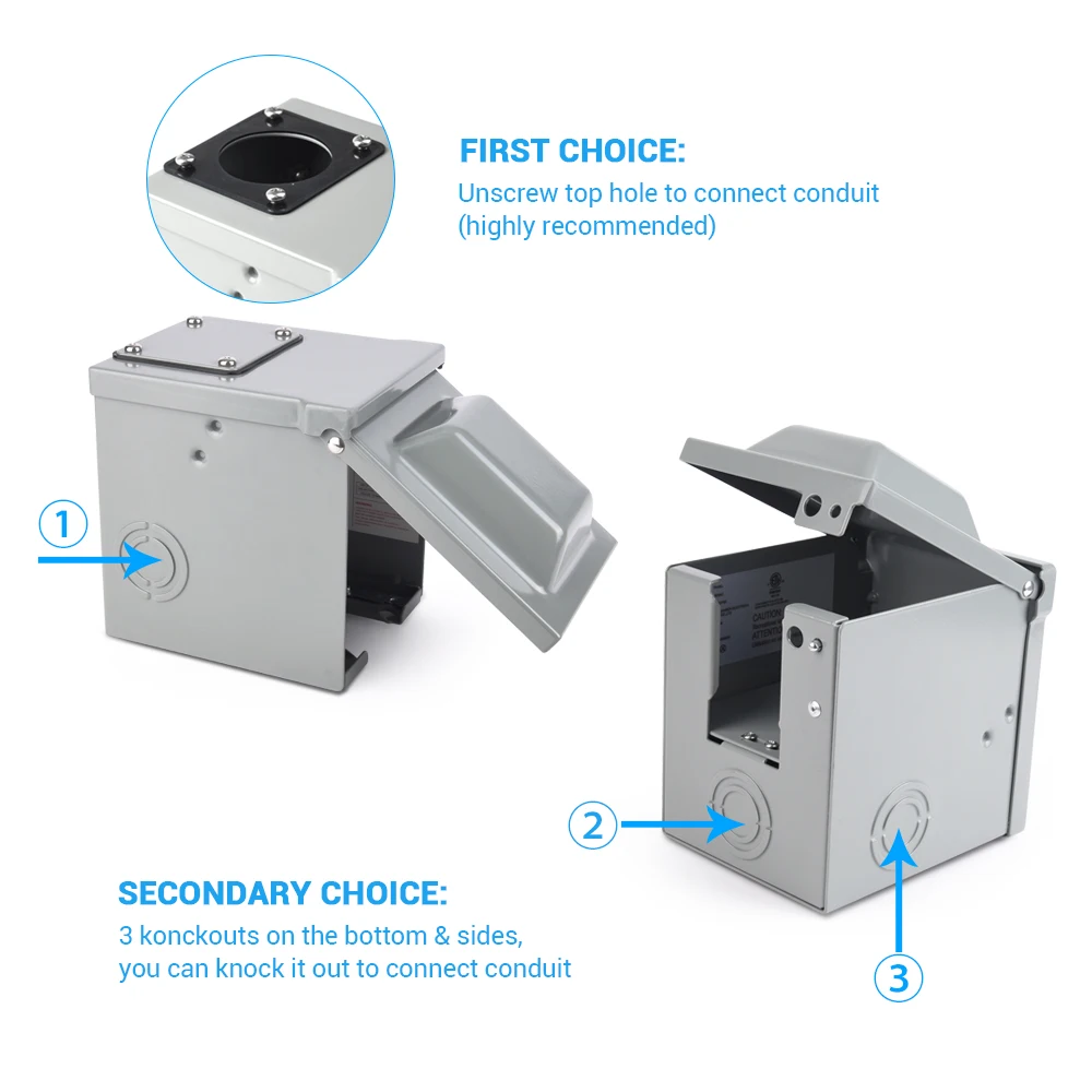 1. RV панель питания-50 Ампер 125/250 вольт розетка, гнездо NEMA 14-50R, тип 3R корпус Всепогодный, совместим с нормальным 50A Nema 14-50P шнур RV