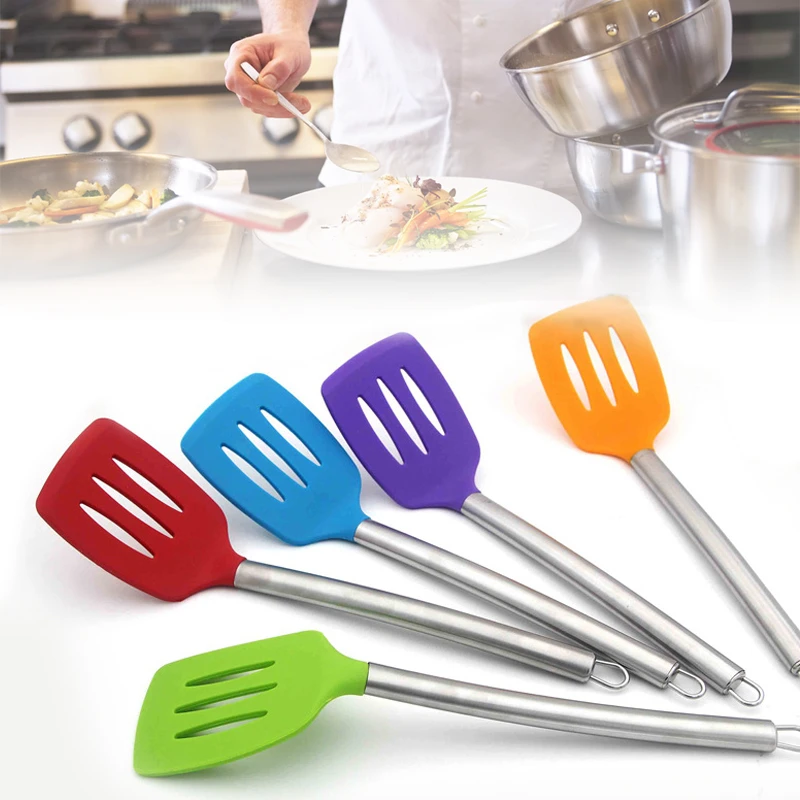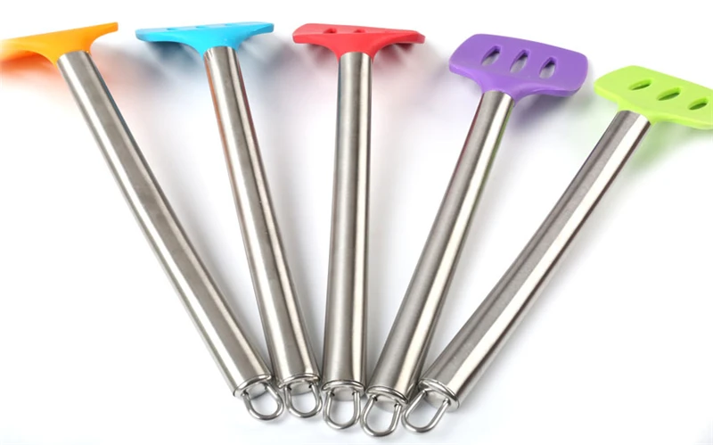 Особенности1. Ручка из нержавеющей стали -- cOme с прочной головкой с силиконовым покрытием и ручкой из нержавеющей стали, легко варить и поворачивать яйцо, бифштекс или другую деликатную еду;2. Пищевой чистый силикон --Термостойкость до 425, которая не оставляет вкуса и запаха для вашей пищи;3. Конструкция подвесного отверстия --Поставляется с отверстием на ручке, который повесит его с помощью крючка после использования;4. Безопасность посудомоечной машины --Головка с силиконовым покрытием легко моется, в посудомоечной машине.