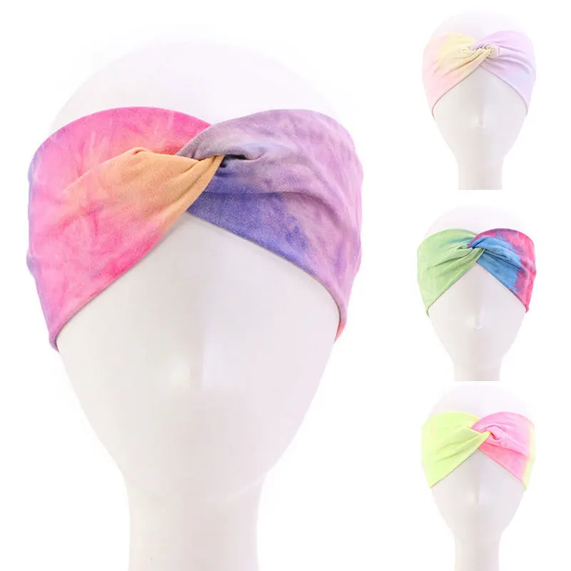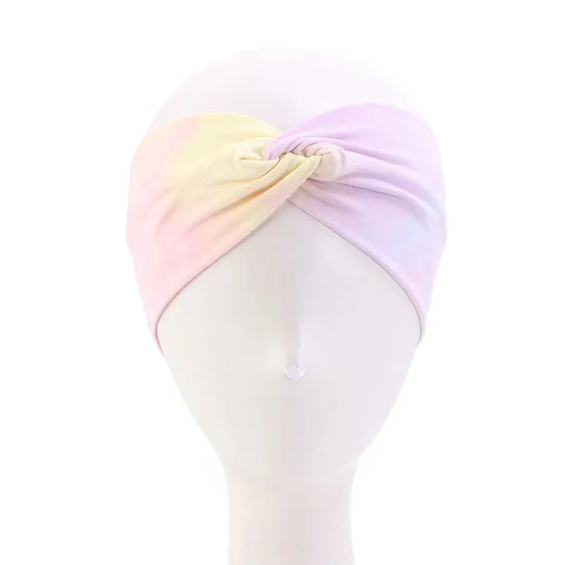 Женская повязка на голову с галстуком-краской, хлопковые эластичные повязки для волос, Твист Тюрбан с узлом, широкие обручи для волос для девочек, цветные аксессуары для волос, повязка