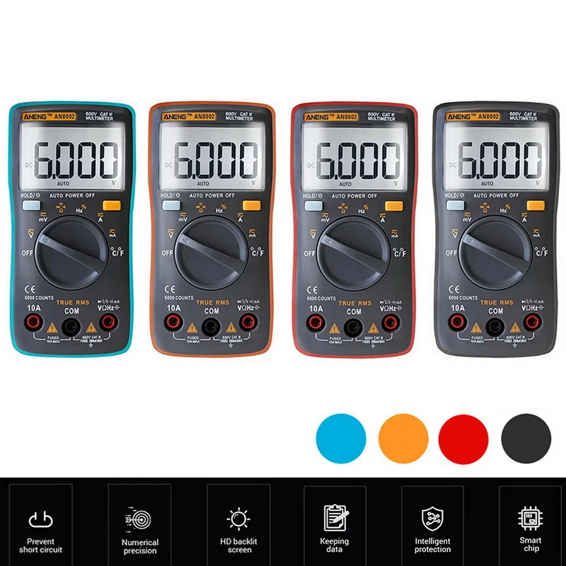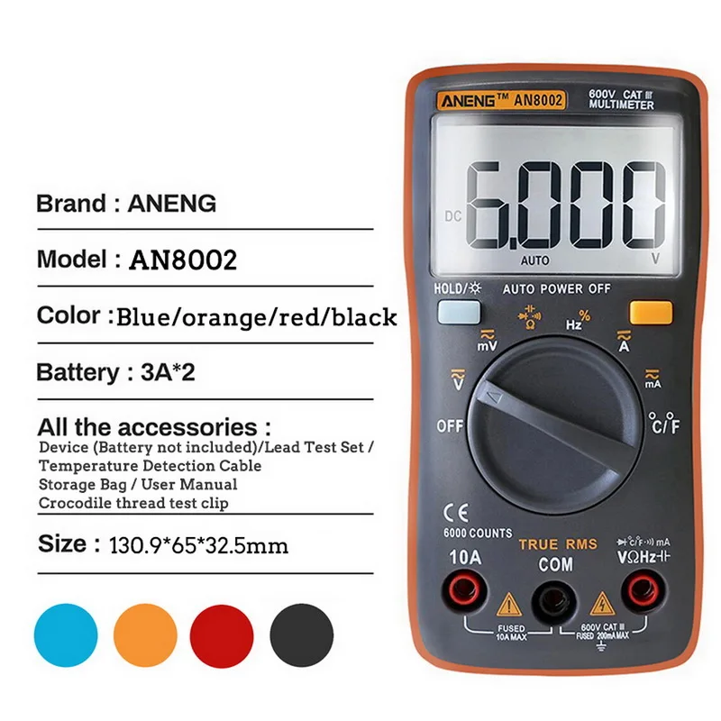 <Функция: AC / DC напряжение, AC / DC ток, сопротивление, емкость. Измерение диодов/выключений, Измерение частоты и коэффициента мощности