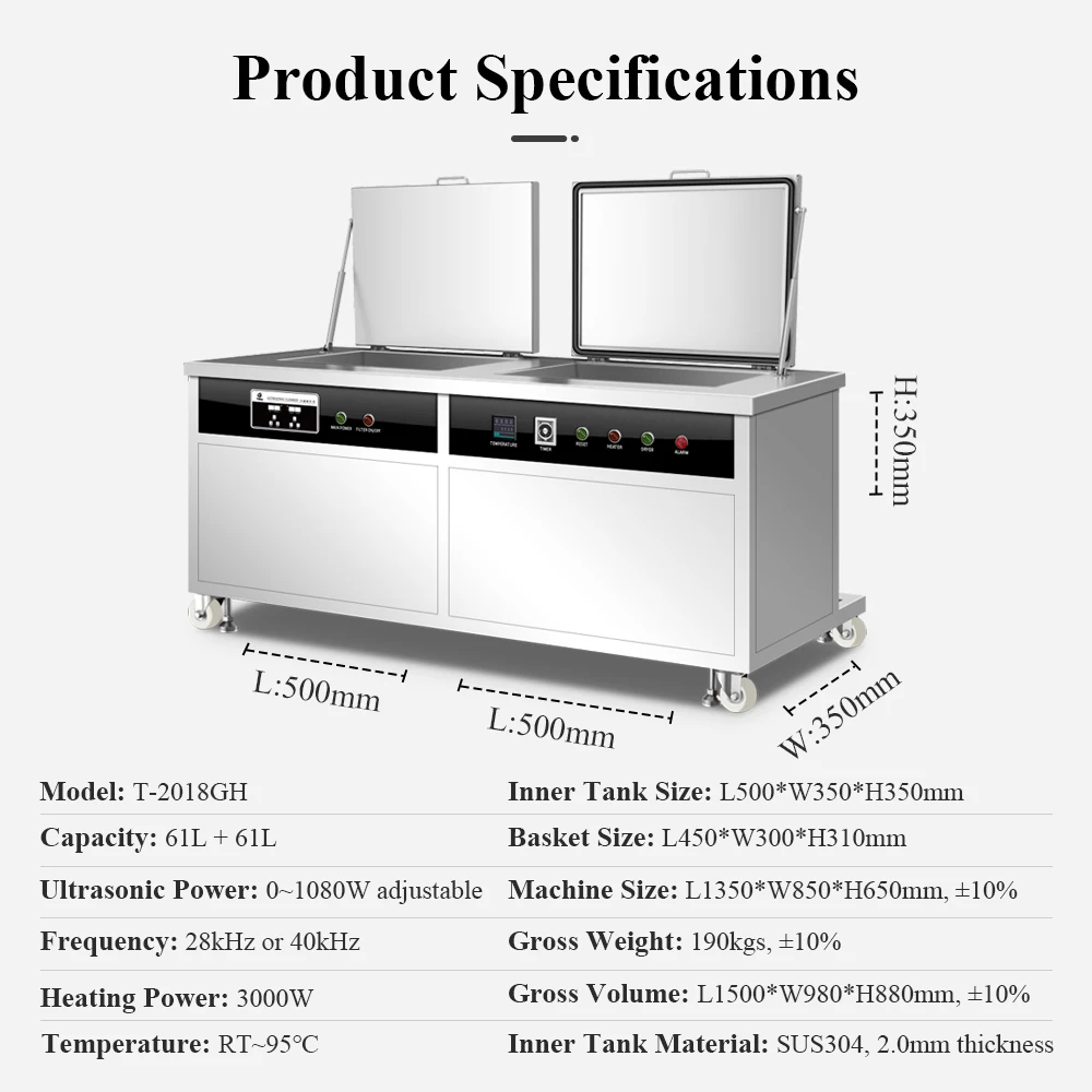 Tullker 45L/61L/88L/108L/135L/175L/264L/360L Промышленный Ультразвуковой очиститель с двойными баками