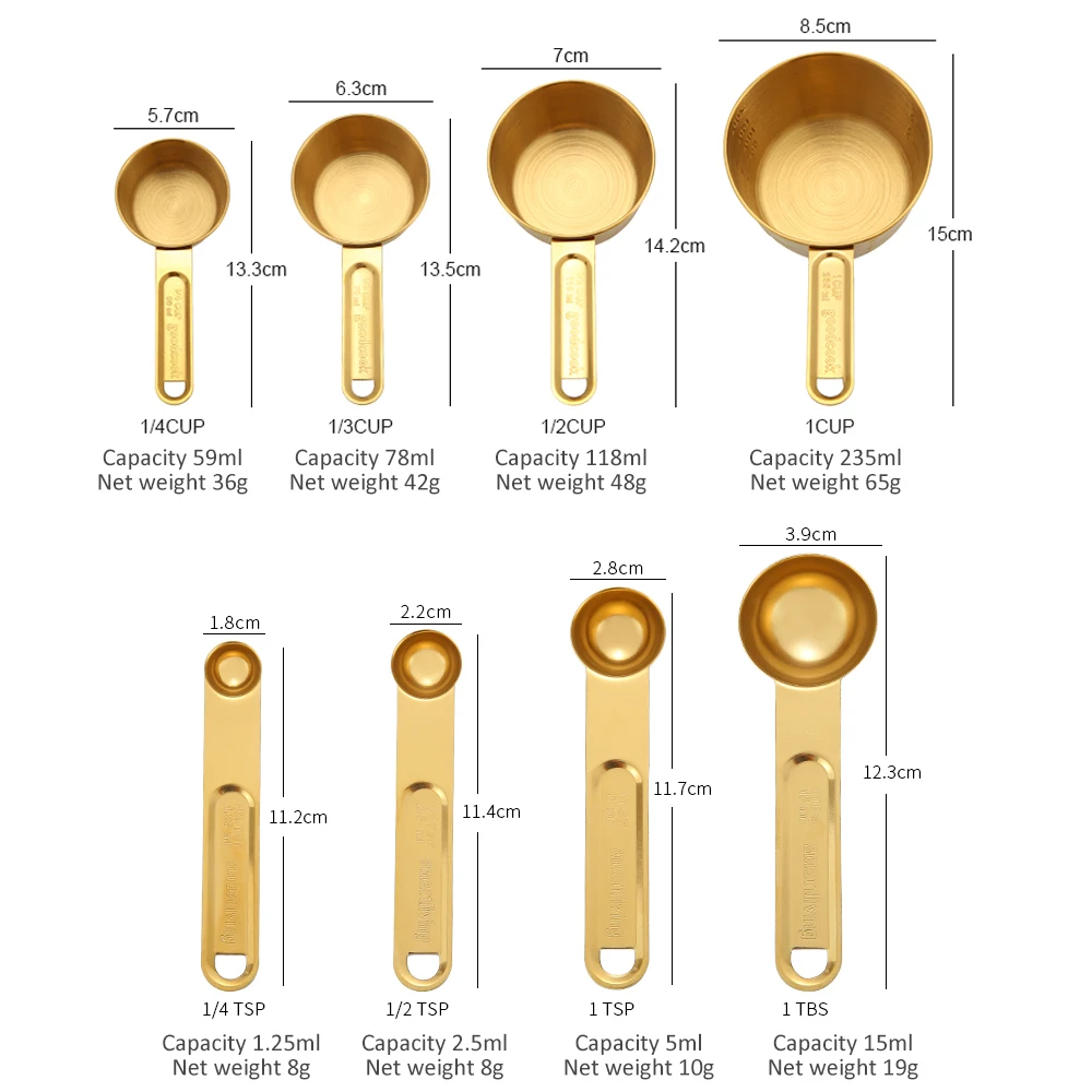 100% новый товар высокого качества.8 шт * мерные стаканы ложка из нержавеющей стали