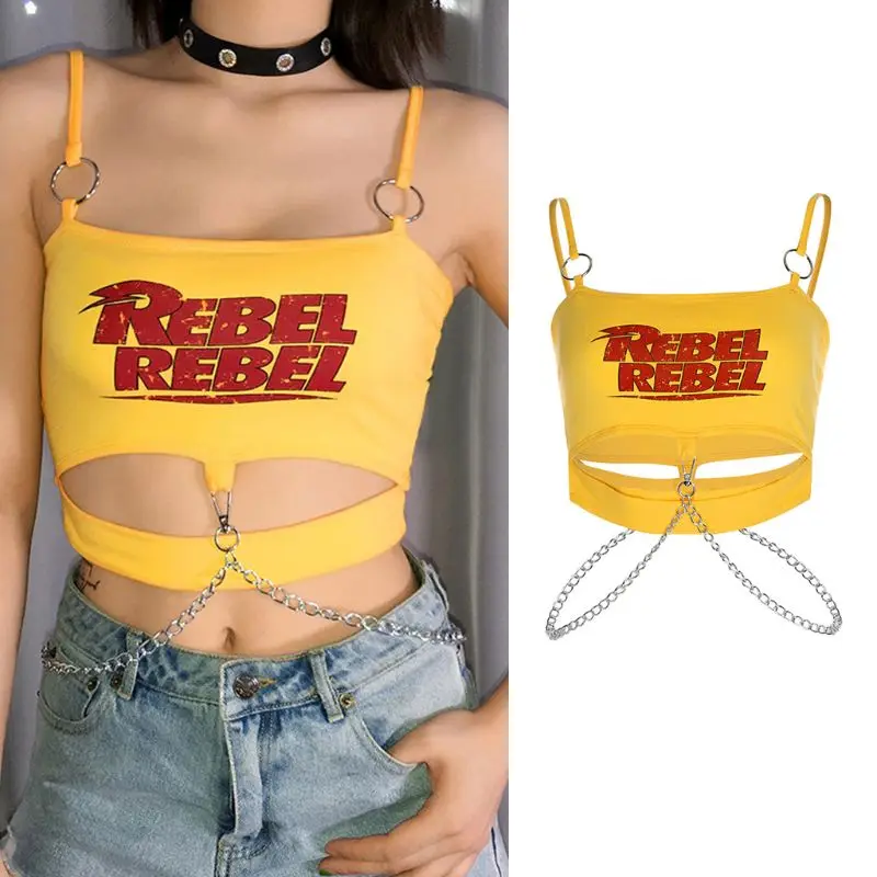 Харадзюку, готический панк стиль, с буквенным принтом, короткая укороченная длина, крест-накрест, украшенная металлической цепочкой, зауженный крой.