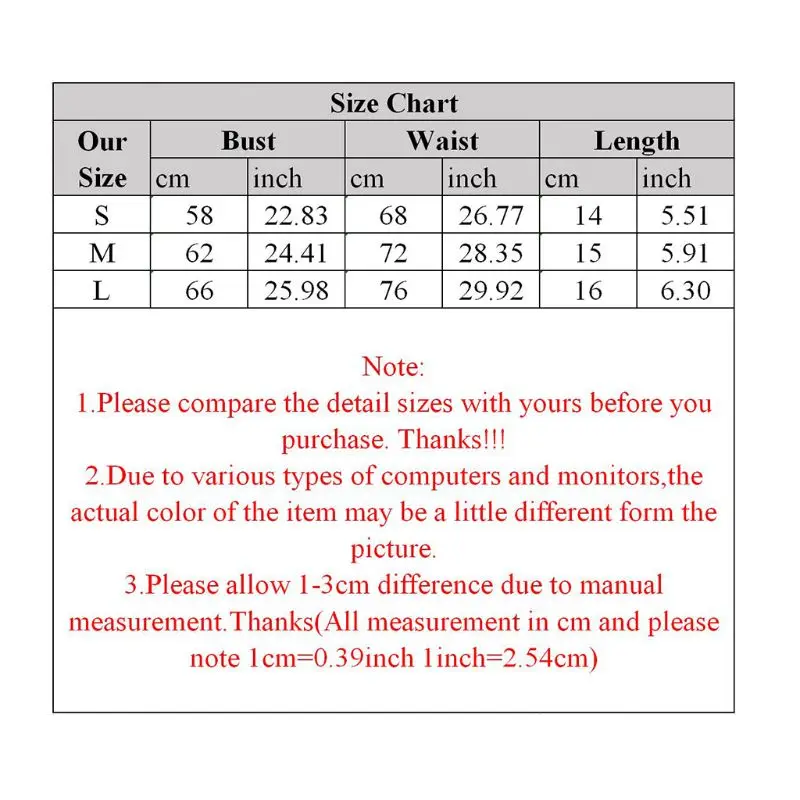 Размер: M Обхват груди: 62 см (24,41 дюйма) обхват талии: 72 см (28,34 дюйма) Длина: 15 см (5,91 дюйма)