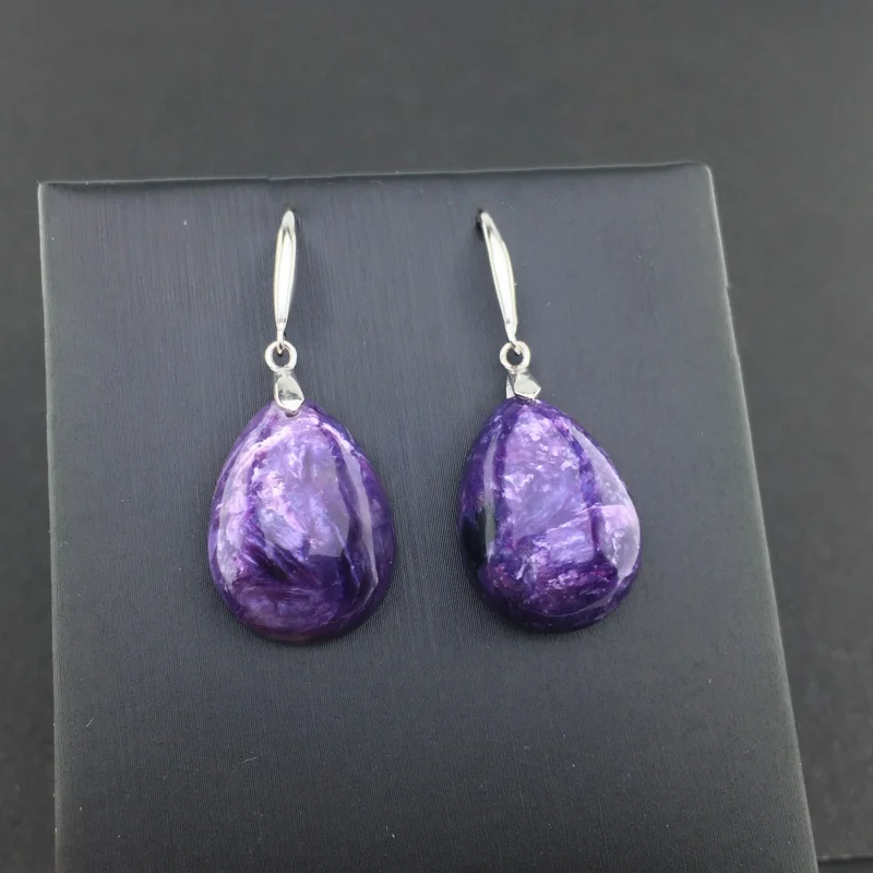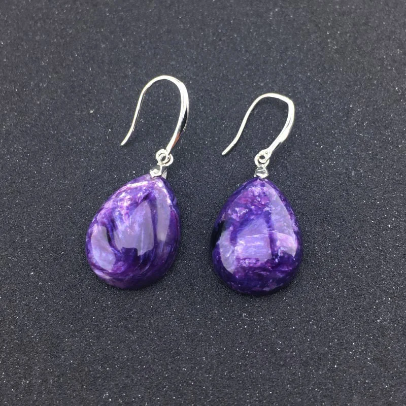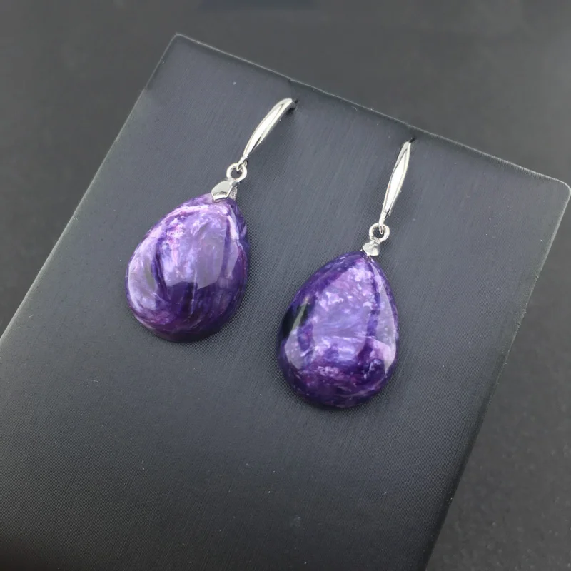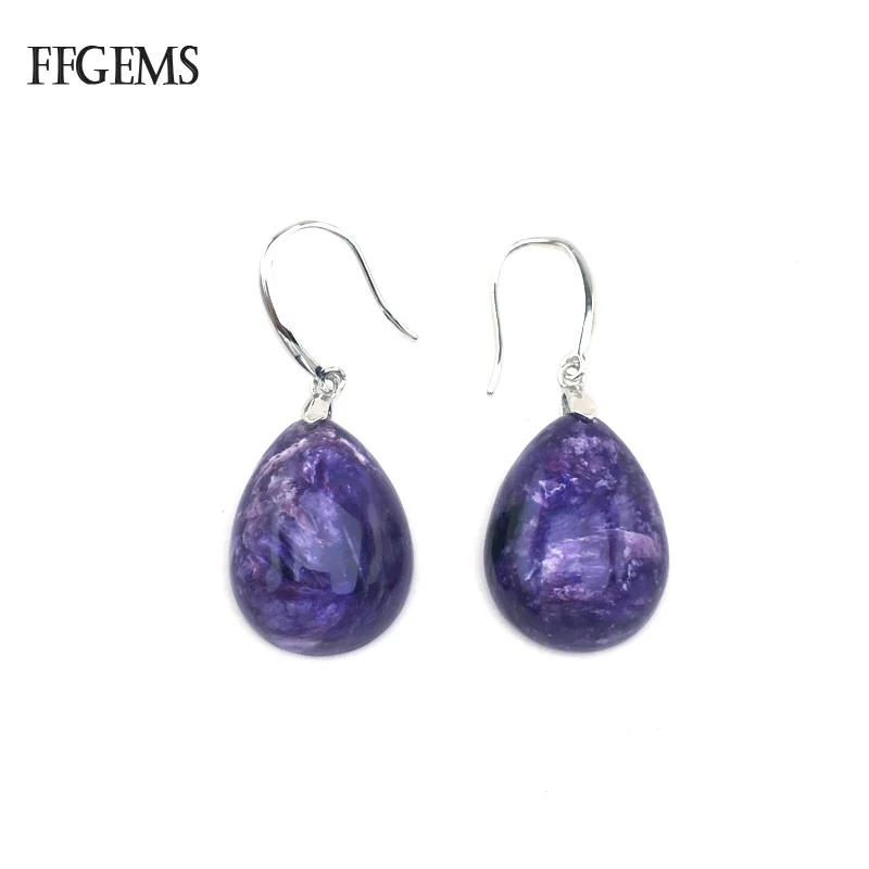 FFGems, Природный чароит, серьги, серебро 925 пробы, драгоценный камень, ювелирные украшения для женщин, леди, свадебный подарок с коробкой Основной камень: Природный чароит Размер камня: 15*20 мм Вес: 7,6 г