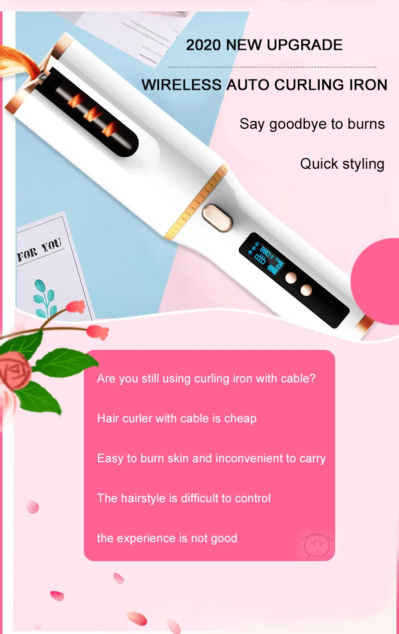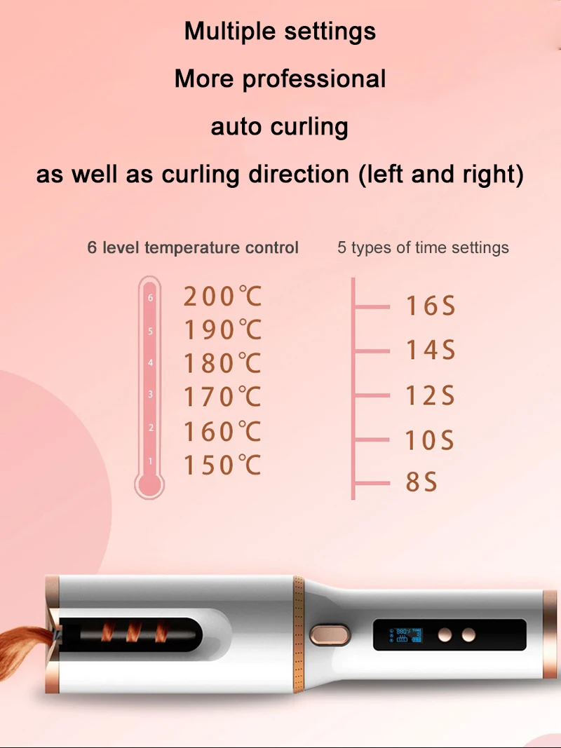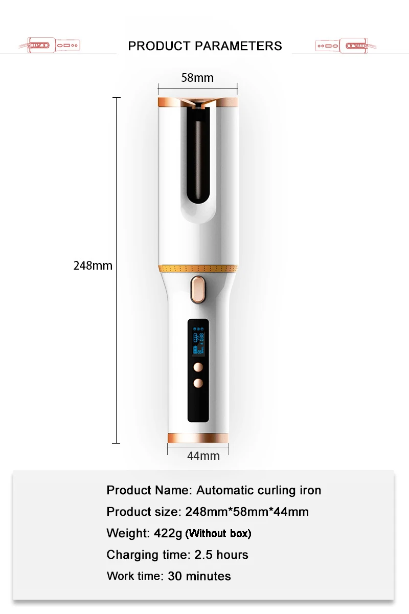 【Fast heating】профессиональный турмалиновый керамический бочонок, быстро нагревается и дает вам гладкий, массивный блеск и локоны без всех повреждений. 【Жк-дисплей 】 большой светодиодный дисплей обеспечивает четкую температуру, направление и таймер, он обеспечивает более читаемое и удобное использование. 【Efficient & safe】наши бигуди можно быстро нагревать и его беспроводной дизайн может максимизировать эффективность моделирования. Он оснащен безопасным и нетоксичным изоляционным материалом внутри плойки, который может защитить вас от ожогов при использовании. 【 Регулировка температуры/таймера/направления: 150-200 ℃ выбор температуры, 8-18s Авто щипцы для завивки, а также направление завивки (слева и справа) вместе позволяют легко образовывать идеальные свободные или тугие локоны, экономя много времени. 【USB аккумулятор и зарядное устройство 】 встроенный литий-ионный аккумулятор 5200 мАч обеспечивает супер удобное беспроводное использование. Между тем он также может быть использован в качестве банка питания. 【Простота в использовании и портативность ствол автоматически вращается вокруг и обертывает секцию волос в камеру для завивки. Легко носить с собой во время путешествий, можно завивать волосы в любое время и в любом месте, вдали от неприятностей с линией.