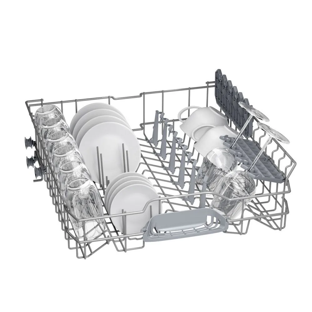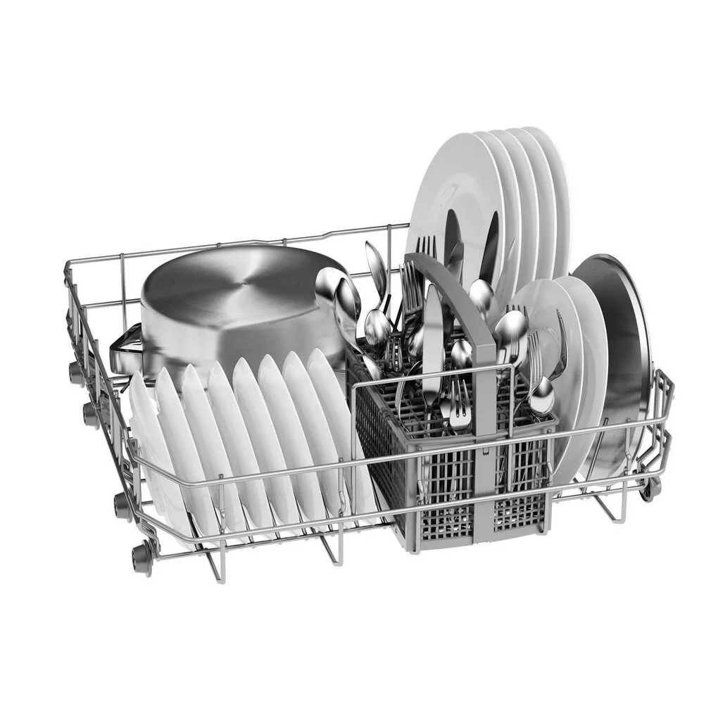 Основные параметрыВместимость - 12 комплектов посуды + 1 сервировочныйКласс энергоэффективности: AКласс мытья: AКласс сушки: AПараметры потребления: 9.5 л/1.05 кВт/чПотребление воды на программе Эко 50 C°: 9.5 лПродолжительность цикла на программе Эко 50 C°: 210 минУровень шума: 48 ДБПолновстраиваемаяПрограммы и спец. функции5 программ: Нормальная 65°, Эко 50 C°, Ночная программа 50 C°, Быстрая 65 C°, Предварительное ополаскивание1 специальная функция: ГигиенаПлюс2 программы мытьяКомфорт и безопасностьГидравлическая система ActiveWater – инновационная технология использования воды для максимальной эффективности мытья посуды. Точный расчет направления водяныхструй, подаваемых из вращающихся коромысел, и оптимальное давление позволяют добиваться максимального эффекта от каждой капли воды.Специальный отсек DosageAssist в ручке короба обеспечивает своевременное и равномерное растворение комбинированных моющих средств (таблеток и капсул)Бесщёточный мотор EcoSilenceDrive с инверторным управлением обеспечивает эффективную работу с минимальным уровнем шума и сокращает расход воды, а датчик загрузки обеспечивает экономичный расход водыПосудомоечная машина подстраивается под тип моющего средства, обеспечивая оптимальный результат мытьяЭлектроника Регенерирования позволяет оптимальным образом расходовать соль, экономия может составит до 35%Полезные функцииТрёхкомпонентный самоочищающийся фильтрВнутренние стенки прибора из нержавеющей сталиПанель управления сверхуЗвуковой сигнал окончания хода программыLED-индикаторы (красная подсветка)Электронные индикаторы наличия соли и ополаскивателяLED индикатор наличия солиКорзина для столовых приборов в нижнем коробеБезопасность и РазмерыСистема AquaStop обеспечивает защиту от любых протечек, как внутри прибора, так и в случае разрыва заливного шланга. В случае, если система AquaStop не сработает, компания BSH гарантирует возмещение ущерба, связанного с протечкой. Гарантия на возмещение ущерба действительна весь срок службы прибора - 10 лет.Благодаря замку ServoSchloss дверь закроется сама, если угол открытия менее 10 градусовСлишком мягкая вода может стать причиной коррозии стекла. В посудомоечных машинах с технологией "бережного мытья стекла" степень жесткости воды в моечной камере поддерживается aвтоматически, в заданном потребителем диапазоне значений.Ножки, регулируемые по высоте до 6 см, подходит для кухонь с высотой столешницы 90 смМеталлическая пластина на столешницу для защиты от параРазмеры прибора: (ВxШxГ): 81.5 x 59.8 x 55 смВстраиваемая посудомоечная машина