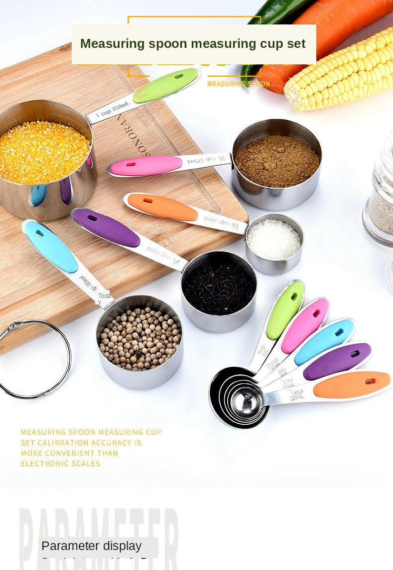 Высококачественная нержавеющая сталь: Изготовленная из высококачественной пищевой нержавеющей стали и красочного силикона, не содержащего бисфенол, мерные чашки и ложки из нержавеющей стали являются обязательными для каждой кухни! Очень прочные и экологически чистые, наши кухонные принадлежности из нержавеющей стали являются твердыми, хорошо сконструированными предметами, которые прослужат годами. Больше нет догадки, когда вы добавляете ингредиенты к Вашим любимым рецептам. С нашими точными измерительными чашками и ложками, ваши рецепты будут выходить идеально каждый раз!