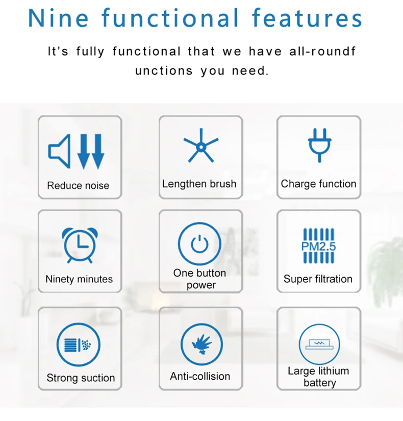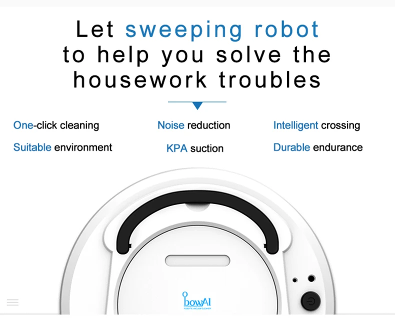 Несколько режимов очистки. Система обнаружения местности OBS. Тонкий дизайн 65 мм. Низкий уровень шума 65 дБ. Низкий уровень шума 65 дБ бесшумный дает вам спокойную окружающую среду. Мощное всасывание 500 Па: он легко поглощает пыль, волосы, бумагу и уменьшает загрязнение. Альпинизм 10 мм: имеет функцию лазания 10 мм, 15 градусов подъем. 1800pa супер сильное всасывание.