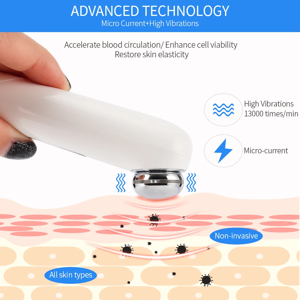1. Высокочастотный микро-вибрационный массаж, может активировать клетки кожи и восстанавливать эластичное волокно кожи. 2. Способствует циркуляции, поднятию глаз и омолаживанию, удаляет темные круги, отечность, гусиные лапки, ослабляет линии губ. 3. Интеллектуальный Индуктивный запуск, после прикосновения, он вибрирует. 4. Угловая металлическая Массажная головка адаптируется к глазам и губам. 5. Маленький и красивый, удобный в использовании и переноске.