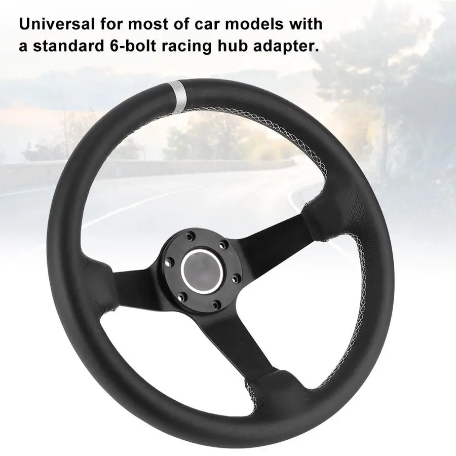 350 мм/14in для SPARCO Стиль 6-болт глубокое блюдо черный кожаный гоночный руль W/рог