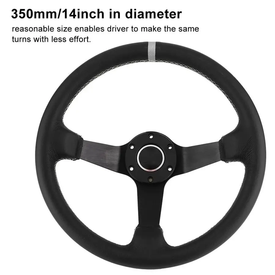 1. 350 мм/14 дюймов в диаметре, разумный размер позволяет водителю делать такие же повороты с меньшим усилием.