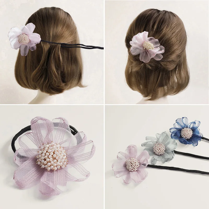 Машинка для изготовления пучков волос, проста в использовании и может сделать своими руками прическу. Украшены искусственным жемчугом, милым цветочным узором. Удобный и легкий, можно использовать повторно. Приносит вам новый стиль волос. Отличные подарки для себя или ваших друзей.