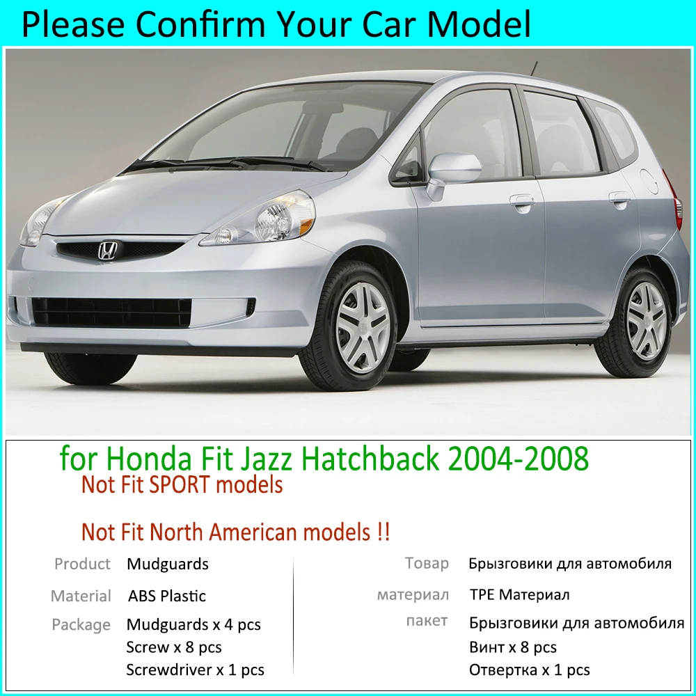 4 шт. для Honda Fit Jazz Хэтчбек 2004 2005 2006 2007 2008 Брызговики защитные аксессуары