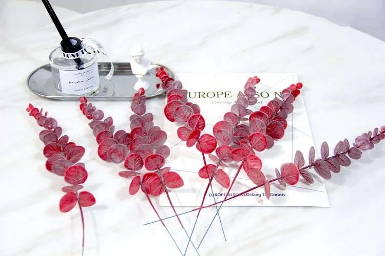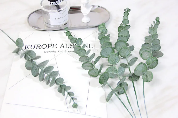 10 шт. искусственные растения пластиковые листья эвкалипта цветок материал украшения свадебный цветок стена моделирование лист зеленый Растительный лист