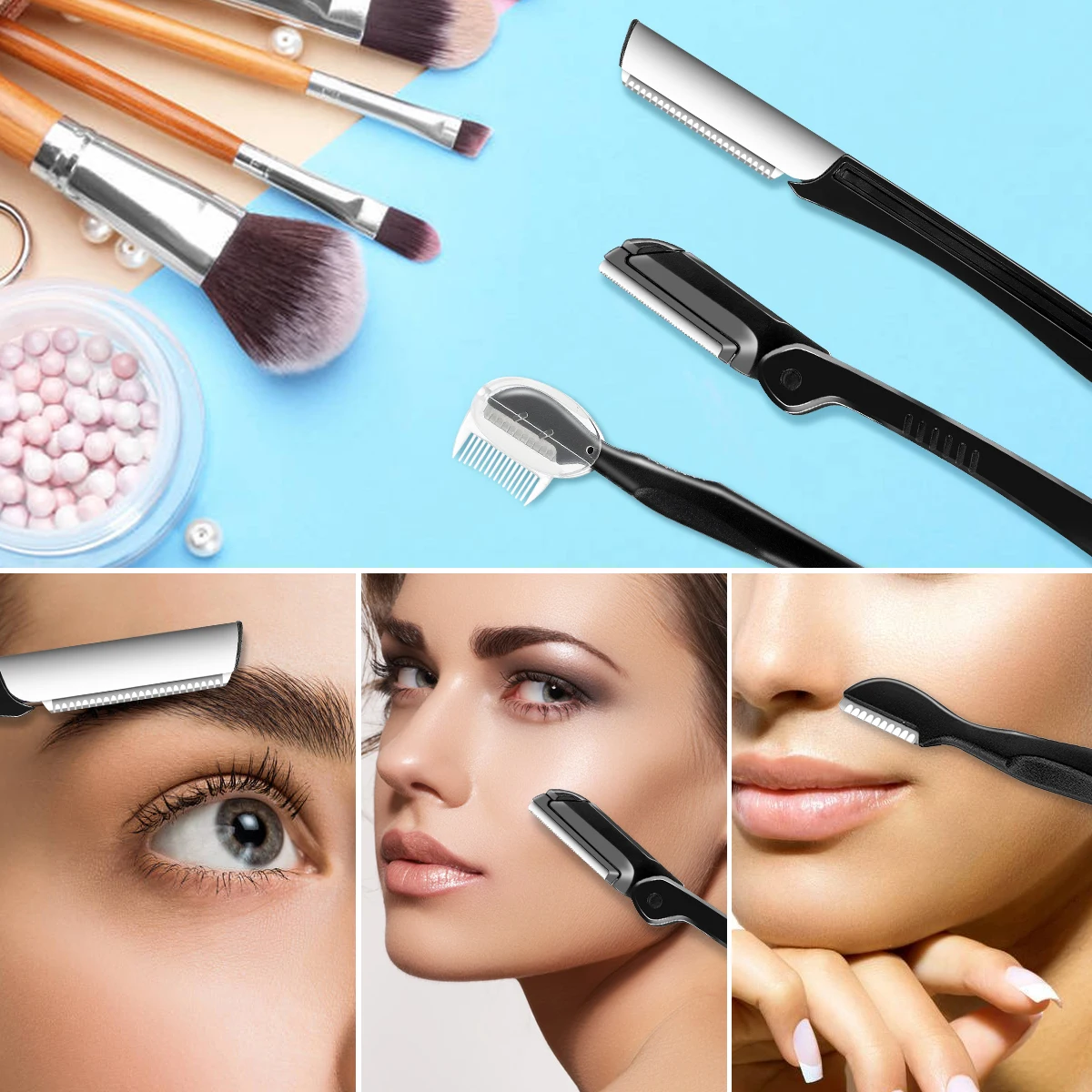 14 шт., набор бритв для бровей, инструмент для отшелушивания, бритва для лица, триммер, бритва для бровей, ножницы, пинцет, инструменты для макияжа