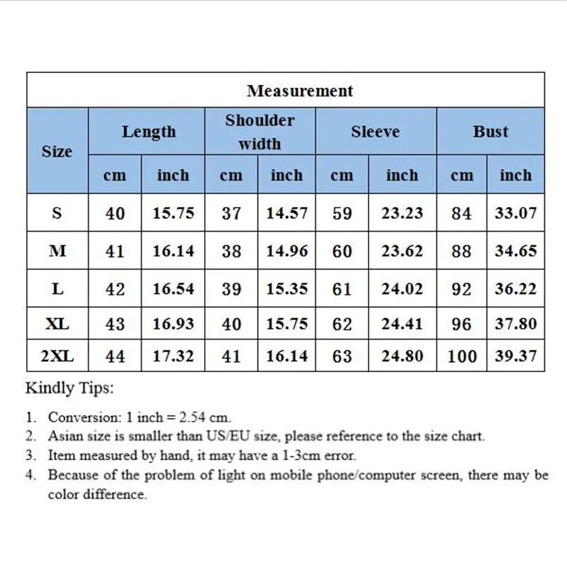 РазмерДлинаПлечоШиринаРукавБюст S Совет: 1. Напоминаем, что из-за световых эффектов, настроек яркости/контрастности монитора и т. д. могут быть некоторые незначительные различия в цветовом тоне фотографии на сайте и фактического товара. 2. Изделие измеряется вручную, может отличаться на 1-3 см, ваше понимание будет высоко оценено