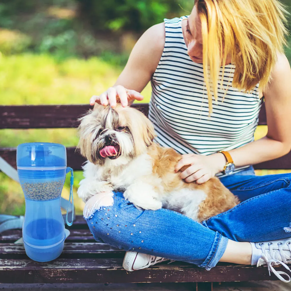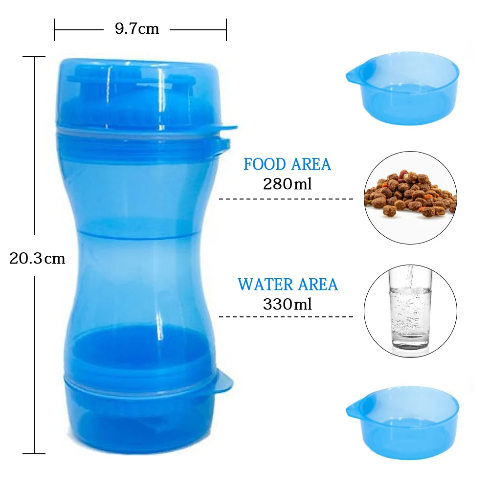 Название: бутылка двойного назначения для воды и еды для домашних животных Подходит для: собаки, кошки Материал: полипропилен Размер: 86*97*203 мм Емкость: Наполнитель 330 мл Площадь загрузки зерна 280 мл