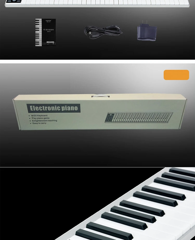 61 клавиша музыкальное teclado пианино портативное взрослое профессиональное Midi клавиатура Цифровое Электрическое l перезаряжаемое электронное пианино 61-клавишная клавиатура (миди клавиатуры) 128 звуки Обычная версия, версия Bluetooth 2 типа Режим питания: два режима зарядки и литиевая батарея Цвет: черный и белый Материал: алюминий + ПК Аксессуары: адаптер питания, usb-кабель, сумка для пианино 2 、 1) Версия Bluetooth может быть подключена к мобильный телефон с помощью функции Bluetooth. 2). Общая версия кнопки на английском языке. 3) Версия Bluetooth имеет функцию Bluetooth, и кнопка на английском языке.