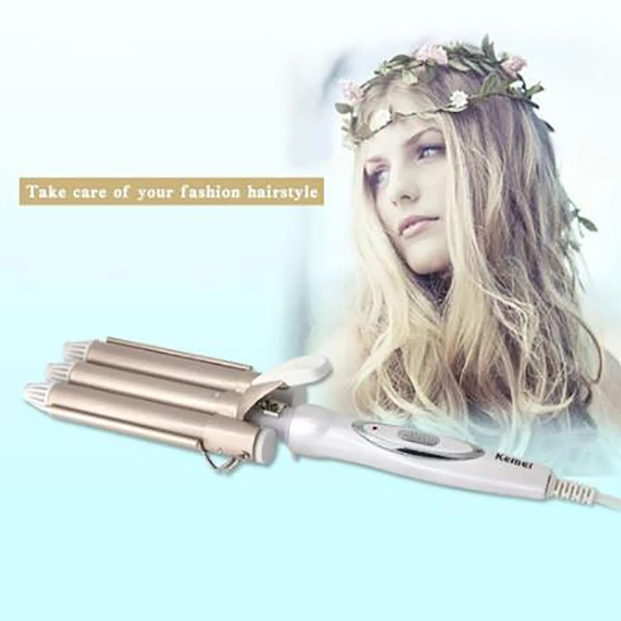 Спецификация: Материал теплопроводности: турмалиновая керамика Модель: KM-1010 Напряжение: 220-240 В Частота: 50/60 Гц Мощность: 45 Вт Применимые волосы: сухие Нагревательный элемент: нагревательный элемент PTC Контроль температуры: регулируемый 170 °C-220 °C Цвет: Золотой Вес нетто: 385 г Длина кабеля: 1,7 м Размер: прибл. 33,5x8,2 см (Длина * Ширина) Плойка для завивки волос с 3 бочками, простая в эксплуатации, может помочь вам создать свободные, большие и красивые волны «S». PTC нагревательный элемент, 30s быстрый нагрев. Используя турмалиновую керамическую технологию, можно высвободить большое количество отрицательных ионов, уменьшая повреждение волос, делая ваши волосы более здоровыми, естественными и более стойкими. Два режима измерения температуры: 170 градусов, 220 градусов, подходит для различных причесок.